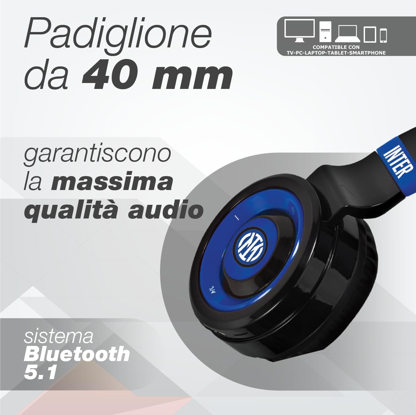 Inter – Cuffie Senza Filo Bluetooth con microfono slot micro sd radio android – ios – computer
